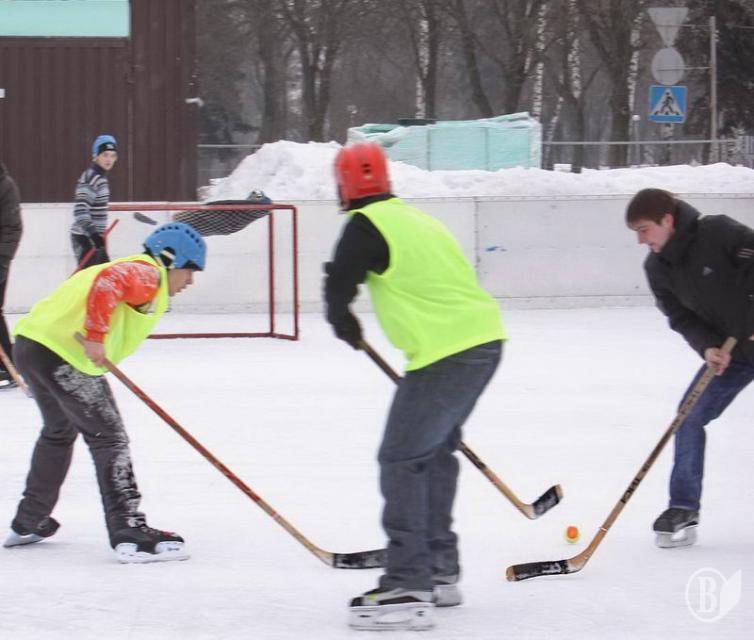 Первенство города по хоккею среди юношей общеобразовательных школ длится в Чернигове. Соревнования проходят на центральной площади города.