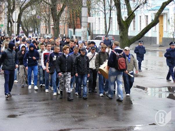 За дві години до початку матчу «Десна» - «Арсенал» (Біла Церква) чернігівські футбольні фанати провели символічний марш вулицями міста.