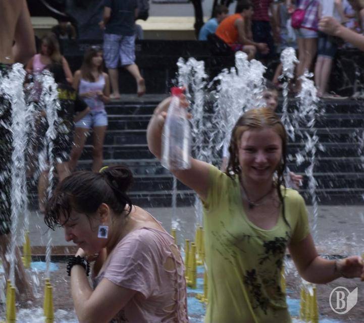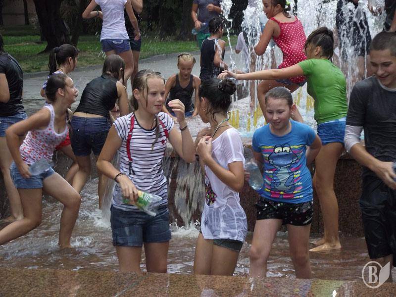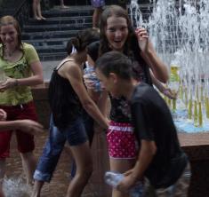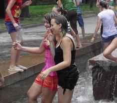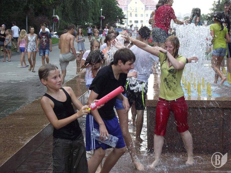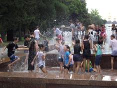 У спекотний день хочеться прохолоди. Але ж хочеться провести дозвілля весело. Активна молодь міста придумала альтернативу пляжу – «водні війни» у фонтані.