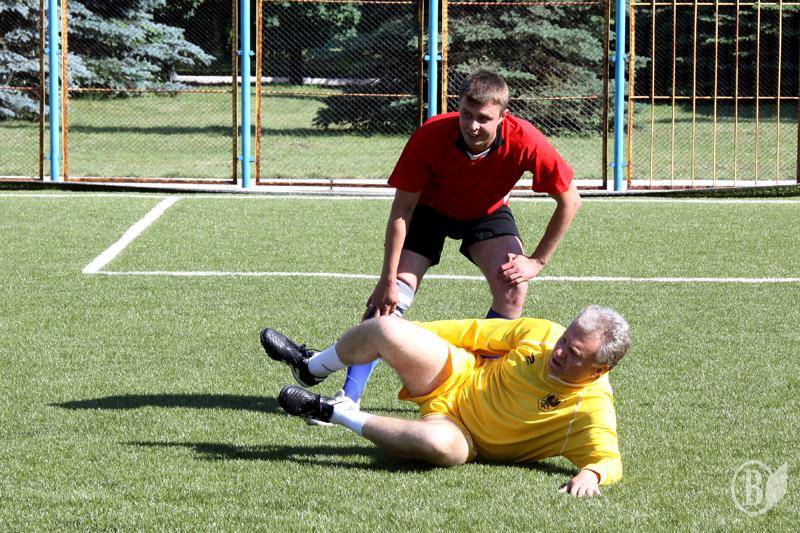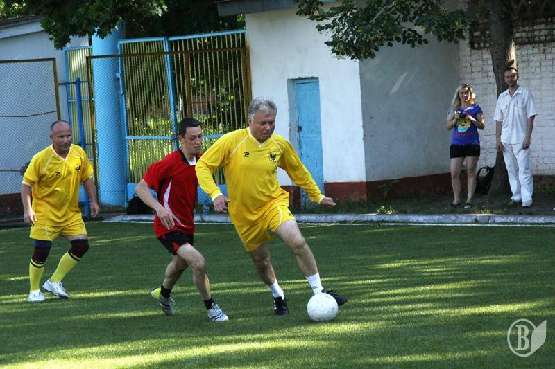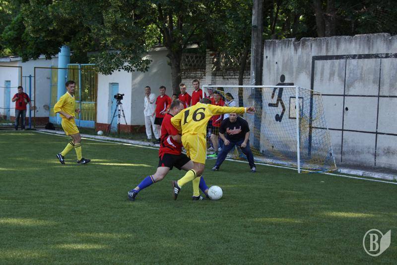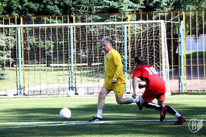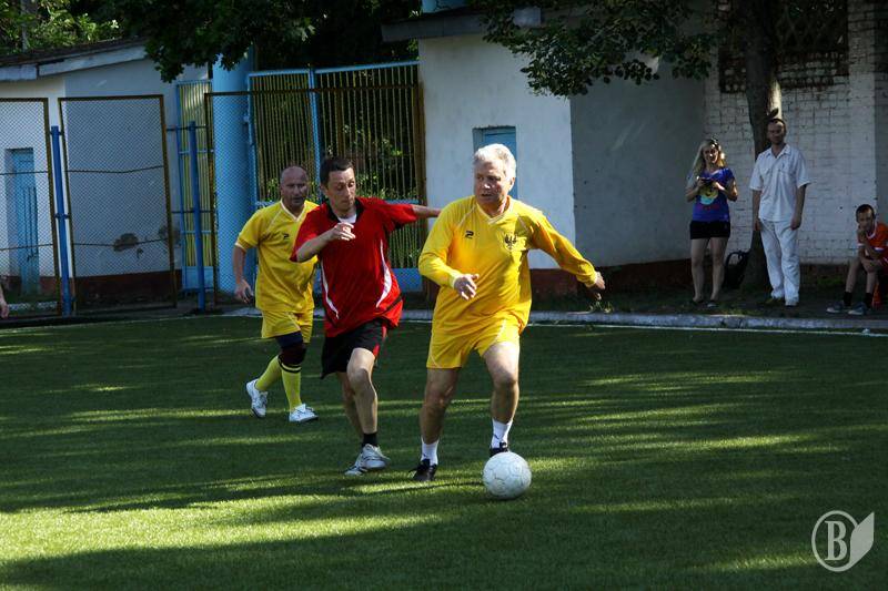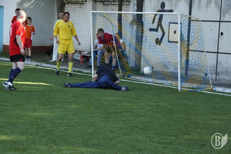 Команда досвідчених «аксакалів», сформована з чиновників рад і адміністрацій різних рівнів, а також колишніх футболістів вправно тиснула на акул пера, камери і мікрофона протягом усієї гри.