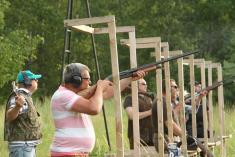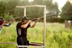 Стрільба ведеться з гладкоствольних рушниць дробовими зарядами по спеціальних мішенях-тарілочках.