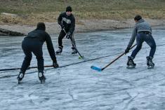 Хутенько дістаю фотокамеру і мерщій до них. А лід десь вже сантиметрів 5-7. Гладенький такий. Хлопці зібрались, хто звідки. Головне, що вони вже давненько мріяли зіграти в хокей.