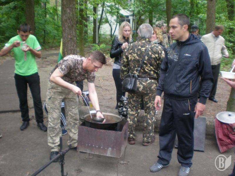 За приготовление кулеша на 100 процентов взялся Главный Атаман, основатель и организатор боевой «Казацкой роты, Север» Анрий Коломийцев. Печенье, конфеты, сахар для целебного чая, при содействии Сергея Николаевича, главы «Кадетского братства» Черниговской ячейки предоставил тот же «Базис». Выдавали сладости волонтеры 6-й школы во главе с будущим врачом Машей Семенец.