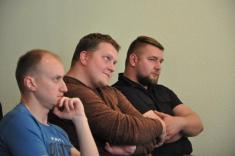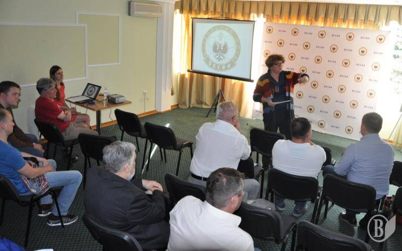 Спікери, яких було запрошено до слова, представили інформацію з історії клуба та Чернігівщини. «Нинішня емблема практично копіює емблему Латвійської федерації футболу. Історичні кольори «Десни» – біло-блакитні, на цьому й варто зосередити основну увагу», – висловив свою думку знавець історії чернігівського футболу Віктор Муха.