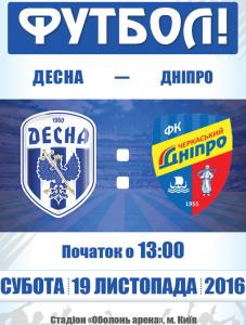 Матч між командами футбольних клубів «Десна» і «Черкаський Дніпро» відбудеться в цю суботу в Києві на стадіоні «Оболонь-арена». Початок матчу – 19 листопада о 13:00.