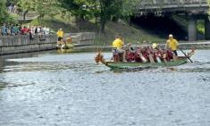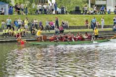 Майже цілісінький день 27 травня на р. Стрижень в районі Красного мосту тривали змагання на човнах «дракон» – драгонбот.
