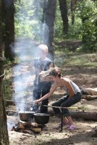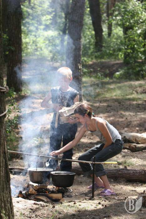 Всі команди юних туристів живуть в наметах у лісі на чистому повітрі, купаються в Десні, варять їжу на вогнищі. І годують собою комарів, проте але на це ніхто не скаржиться.