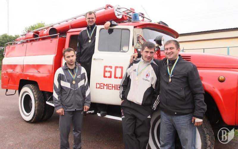 Не обійшлося цього разу і без традиційного купання у пожежному водоймі ст. л-та Камка Олександра керівника команди ППЧ-60 м.Семенівка, що перемогла у змаганнях з бойового розгортання вже четвертий рік поспіль завдяки високій професійній підготовці.