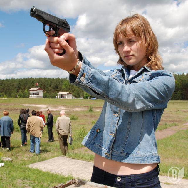 От нарешті – стрільбище! Проте перш ніж дати журналістам зброю, військові кілька разів повторили, чого робити не можна. Не вертіти пістолетом, як лиска хвостиком! Стріляти по хлопцях-дівчатах лише очима! Не бігати під кулями, навіть якщо у тебе в руках камера і потрібен гарний кадр!