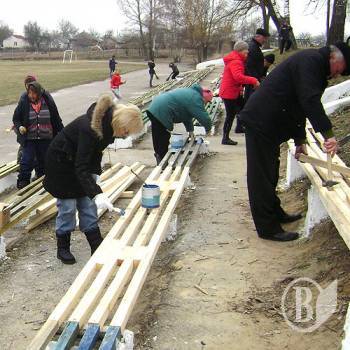Спільними зусиллями пофарбовано спортивні знаряддя, проведений капітальний ремонт місць для глядачів, впорядковане футбольне поле, прибрана територія.