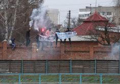 До речі, на плакатах написано в нецензурній формі, щоб міліція забиралася зі стадіону. Це вже необачно з боку хлопців так підставлятися.