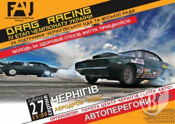 27 серпня на території аеродрому «Півці» відбудеться «зліт» кращих спортсменів-автомобілістів України, які влаштовують найшвидше та найдрайвовіше шоу долаючи 402 м злітної смуги. Для глядачів завжди залишається загадкою: хто перетне фінішну лінію першим, хто отримає чемпіонський кубок та чи можливо кілька років поспіль бути непереможним в Дрег Рейсингу.
