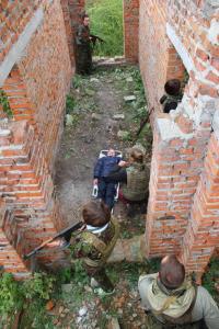 Наступним етапом йшли заняття з тактики – це переміщення безпосередньо на полі бою. Відпрацьовувалися як індивідуальні дії, так і робота в парах і класичних 3-5-7. Основи роботи з будівлею. Прикриття групи при відході з пораненим, та контрзасадні дії.