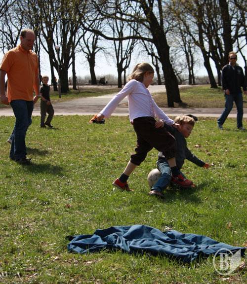 Два дні підряд на древньому чернігівському Валу – Дитинці тривали футбольні поєдинки, які ви бачите. Грали між собою дві, як з’ясувалося, французькі команди „ПСЖ” і „Марсель”, які нещодавно були „вибиті” українськими клубами з чвертьфіналу Кубка УЄФА.