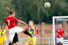 Українки в Чернігові зустрічалися з командою Норвегії. Долю матчу вирішив єдиний гол, забитий представницею Норвегії М'єлде на 32-й хвилині гри.