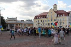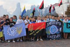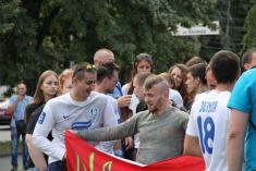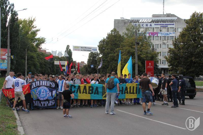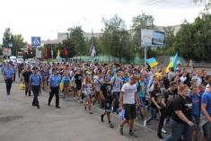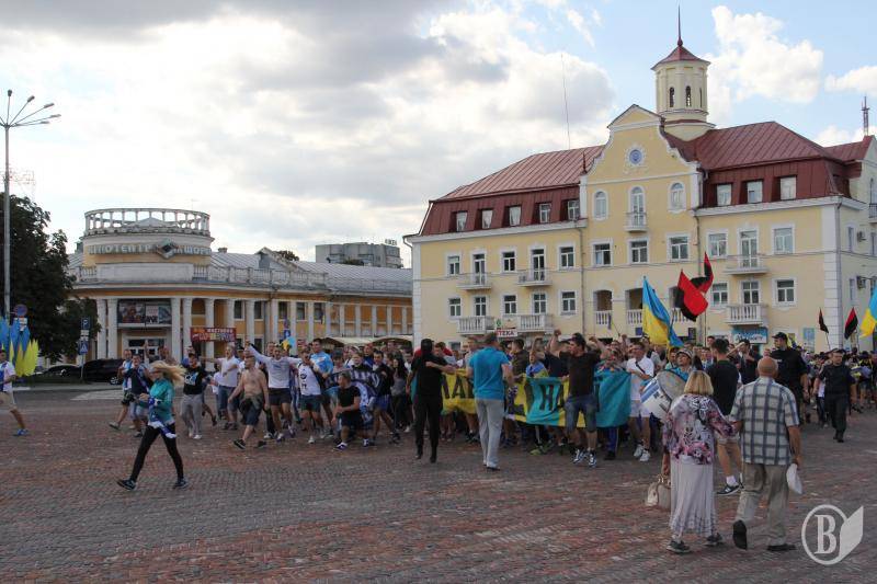 Именно поэтому в знак поддержки тех патриотов, которые сегодня с оружием в руках отстаивают независимость, суверенитет и территориальную целостность нашего государства на Донбассе болельщики обеих команд перед началом матча вместе с общественными деятелями и жителями Чернигова устроили патриотическую поступь по улицам Чернигова, во время которой развернули плакаты патриотического содержания, а также выкрикивали патриотические лозунги.