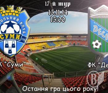 Гра 17 туру першої ліги відбудеться 15 листопада в Сумах о 15-00 на стадіоні «Ювілейний».