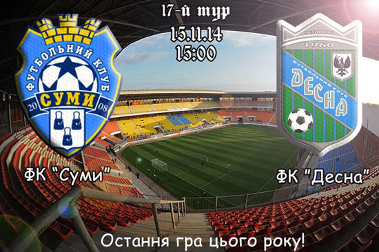 Гра 17 туру першої ліги відбудеться 15 листопада в Сумах о 15-00 на стадіоні «Ювілейний».