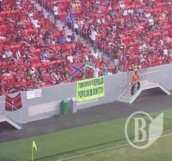 Місцеві уболівальники вивісили плакати на підтримку так званої Донецької народної республіки.