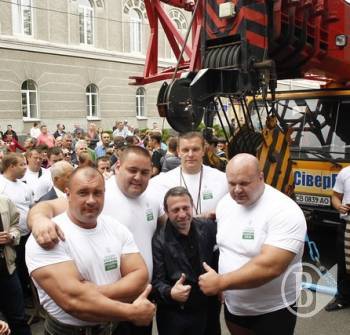 Троє найвідоміших силачів України прославили Чернігів 27 червня. Двоє Олександрів – Лашин та Пеканов, а також Віктор Юрченко довели: українська чоловіча міць – таки надійна сила. Якій двічі підкорюється навіть важелезний будівельний кран.
