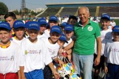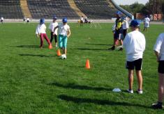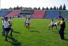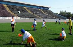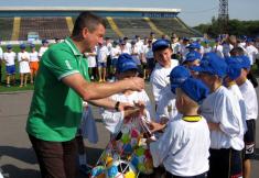 Вони виконували завдання на футбольному полі стадіону, яке було розбите на 12 секторів. За кожним сектором був закріплений відповідальні тренери, які ділилися з дітьми секретами футболу, знайомили з вправами, які допомагають розвинути влучність, швидкість та витривалість. Діти з радістю брали участь у конкурсах, іграх та виконували різні вправи за командами своїх наставників.