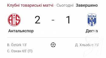 Десна провела перший товариський матч на зборі в Туреччині. Команда Олександра Рябоконя поступилася Антальяспор з рахунком 1: 2.