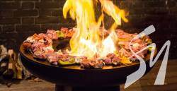 Также рекомендуем для зимнего обеда на свежем воздухе выбрать согревающее меню. Воспользовавшись специальным держателем для казана, на универсальном мангале AHOS можно приготовить плотный ароматный гуляш, одновременно возможно использование жарочной поверхности для мяса-гриль и печёных овощей. А для истинных ценителей шашлыка, AHOS комплектуется съемным держателем шампуров. Отметим, что шашлычки из мягкого мяса можно быстро пожарить на деревянных шпажках прямо на плоском бортике AHOS.