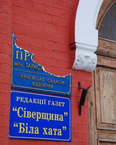 Теперь к сути дела. Сегодня, 16 февраля, было нами обнаружено разбитую вывеску областного объединения Всеукраинского Общества «Просвита» имени Т.Шевченко. Остатки вывески остались на стене.