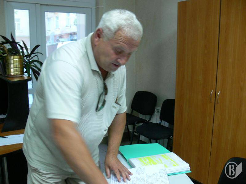 На фото: Юрисконсульт Рутковський біля офісу "Високого Валу", куди прийшов за власним бажанням, заперечує проти свого фотографування на пам"ять.