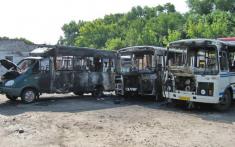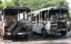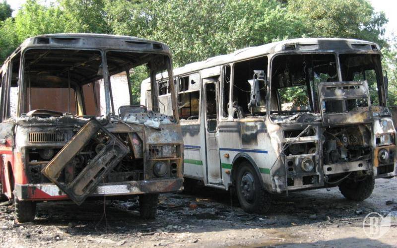 Поджог: Пять автобусов сгорело и четыре повреждено