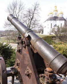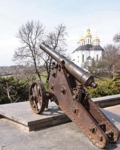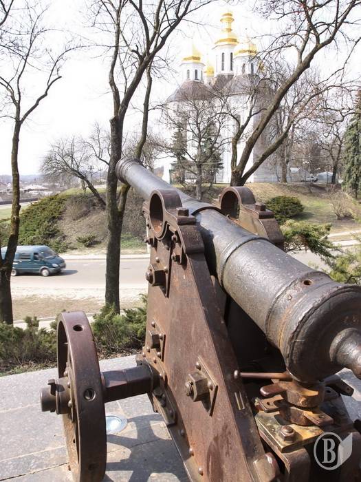 Одна из этих пушек, которая стоит на фоне храма св.вмч.Екатерины – своеобразная визитка города и объект для ежедневной фотосъемки черниговцам и гостями города, любителями и профессионалами. К сожалению, стала эта пушка и объектом сегодняшнего фоторепортажа.