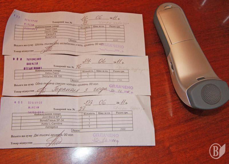 На пам’ять грандіозного обману має цілу батарею пустих коробочок від харчових добавок, які йому вручили кур’єри. Дійсно, диво-ліки, які нічого не лікують. А ще залишилися рахунки за них і прилад невідомого походження.