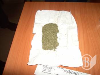 Під час здійснення огляду транспортного засобу за допомогою службової собаки Багіри в багажному відділенні автобуса, між сумками з особистими речами, було виявлено паперовий пакунок з речовиною рослинного походження зеленого кольору, що при проведенні експрес аналізу виявилася марихуаною загальною вагою 13 грамів.
