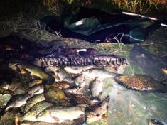 56-річний чоловік виявився власником двох мішків, які містили в собі 20(!) сіток зяберних довжиною понад кілометр і 12 кіло свіжовиловленої риби. Горе-рибалка просто не встиг наловити більше, оскільки міліція припинила його протиправні дії.