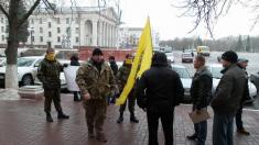 Під стіни будинку Феміди прийшли з десяток активістів «Самооборони Майдану». За словами Олександра Ясенчука – вимагати того, щоб ДНРівця судили у Чернігові, а не у ВолновасіДонецької області. Мовляв, у них є інформація, що адвокат Бухтіярова подає до суду саме таке клопотання і хоче цим самим «вибити» для свого підзахисного «покладисте» правосуддя.