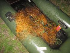 Полицейские достали из воды 90-метровую сетку злоумышленников, которая достигала высоты 3 метров и зазор 70 мм.