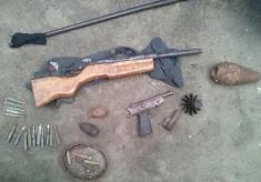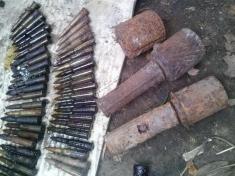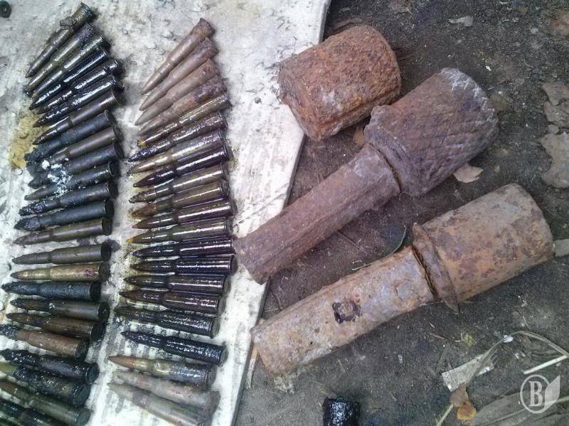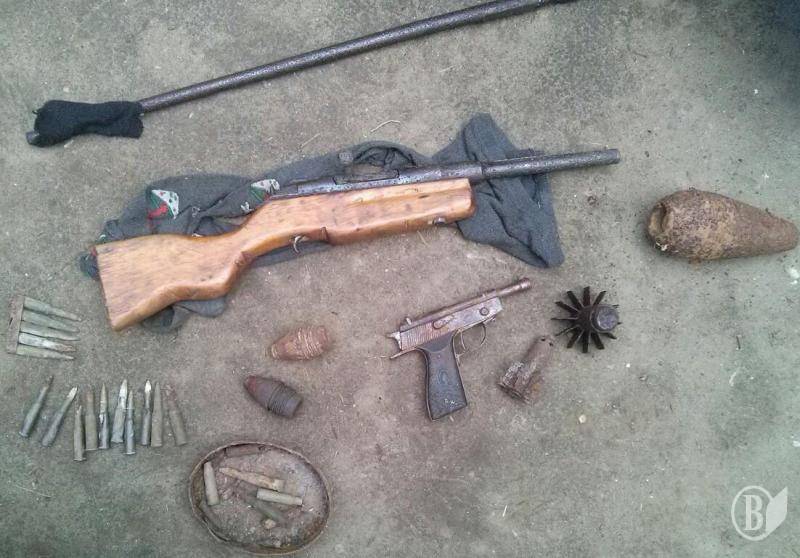 В частном доме ранее судимого черниговца стражи порядка обнаружили самодельный обрез, травматический пистолет с зарядами, две ручные гранаты, противотанковую и минометную мины, выстрел к РПГ, заряды к зенитной установке и крупнокалиберному пулемету, заряженную пулеметную ленту, два магазина к автомату Калашникова, около 200 зарядов разного калибра.