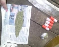 Сотрудники спецслужбы также изъяли почти полкилограмма расфасованной в пакетики марихуаны, несколько десятков пилюль с психотропными веществами.
