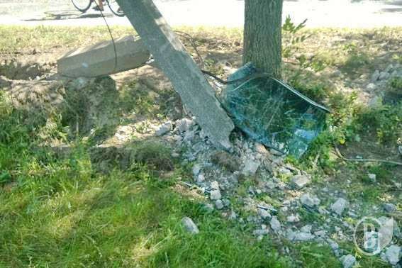 Пьяная компания разбила бетонный столб и ВАЗ-21063