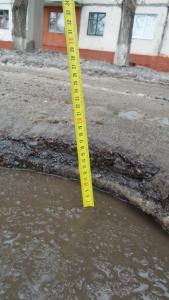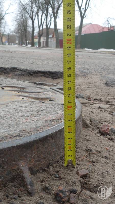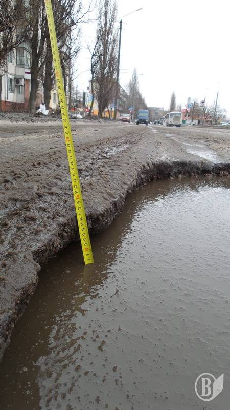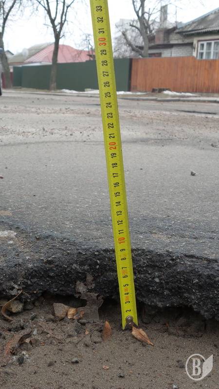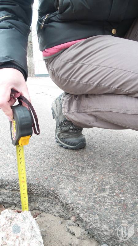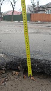 Міряємо дірки і калюжі. Водії з вдячністю оповідають свої історії, власник Мерседеса навіть пропонує "попозувати" колесом в ямі. Деякі гнівно радять міському голові Владиславу Атрошенко поїздити цією вулицею.