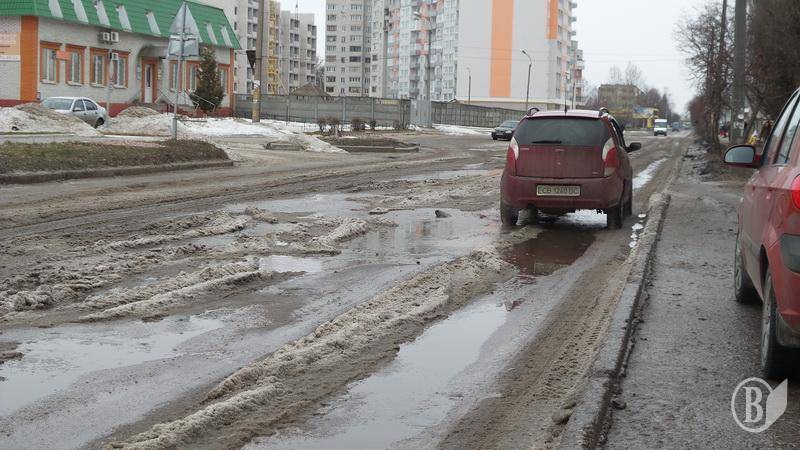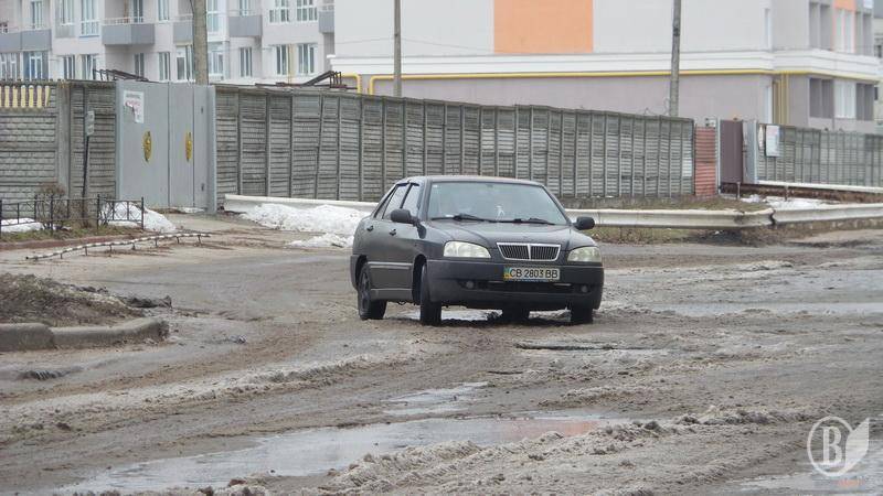 Асфальт з чернігівських вулиць сходить разом зі снігом, на дорогах утворюються величезні ями до 20-ти сантиметрів вглиб. Завширшки вони можуть сягати півдороги, створюючи "односторонній рух".