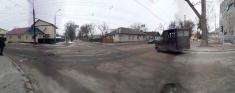 Перетин проспекту Миру і вулиці Чорновола. Майже самісінький центр. Фільмуємо дірку на дорозі, до нас підходить власник "Таврії" і пропонує зафільмувати поранене колесу. Ціна питання, тобто ремонту, 200 гривень.