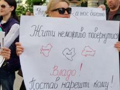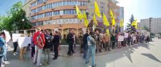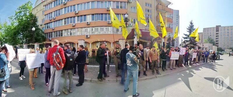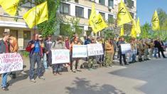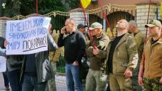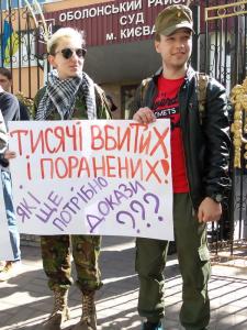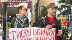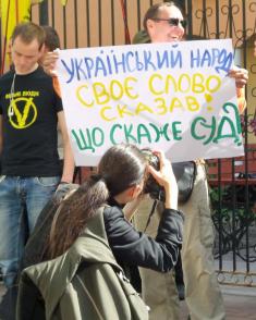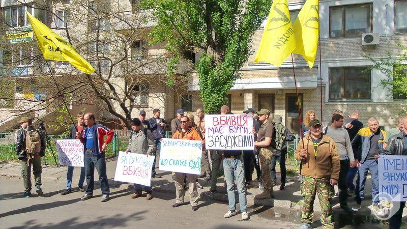 Чернігівський осередок руху «Вільні люди» бере участь у пікетуванні будівлі суду. Вони вимагають покарати колишнього легітимного за державну зраду.