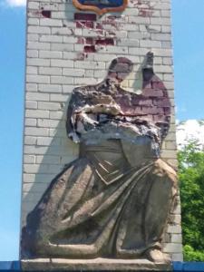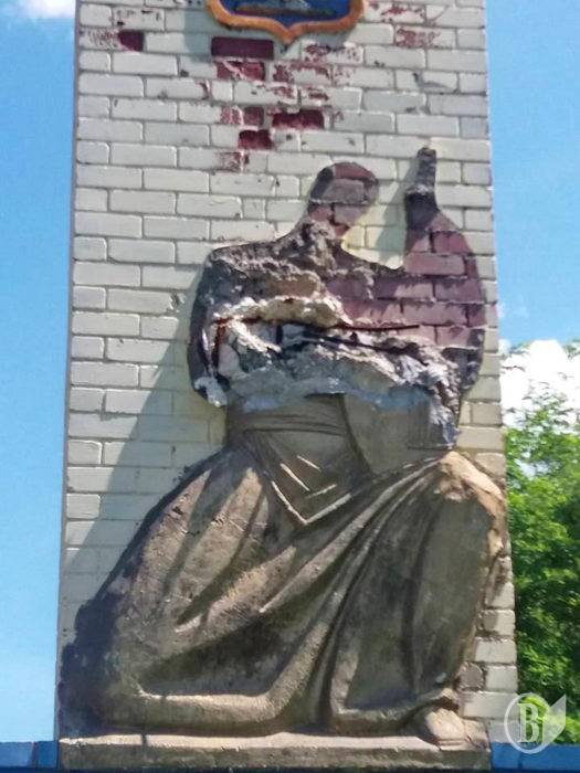 У Березні, селищі Менського району на Чернігівщині, пошкоджено стелу на в’їзді із скульптурним зображенням козака та гербом.