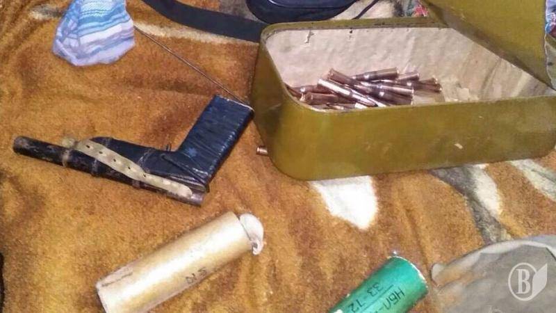 Під час проведення обшуку у помешканні зловмисника правоохоронці вилучили дві гранати РГН із запалами, гранату ВОГ-25 до підствольного гранатомета, реактивний двигун до РПГ-7, майже п’ятсот набоїв калібру 5,45 мм, 7,62 мм та 14,5 мм.