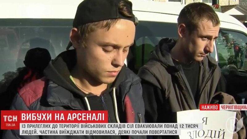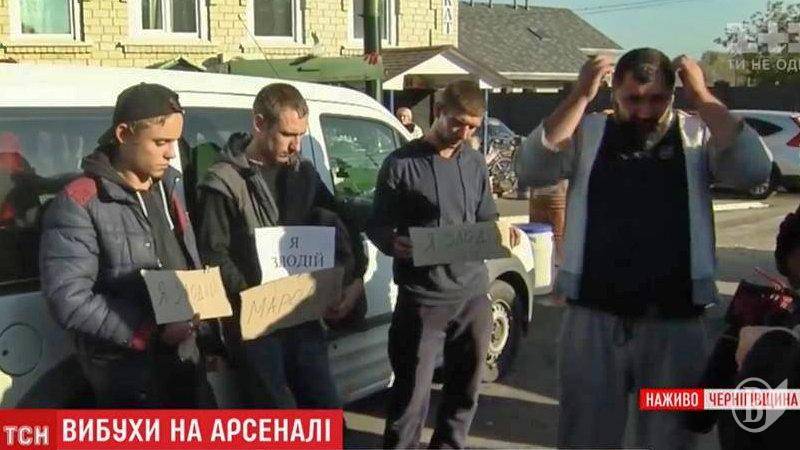 «Хлопці впіймали мародерів, що грабували домівки евакуйованих людей, виставили їх на площі з надписами Я ЗЛОДІЙ», – повідомляє Олег Горбань з профільної спільноти «Підслухано в Ічні».