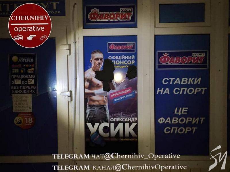 Кілька невідомих у капюшонах зкочили у зачинений заклад, у якого на дверях написи про, цитата, «ставки на спорт».