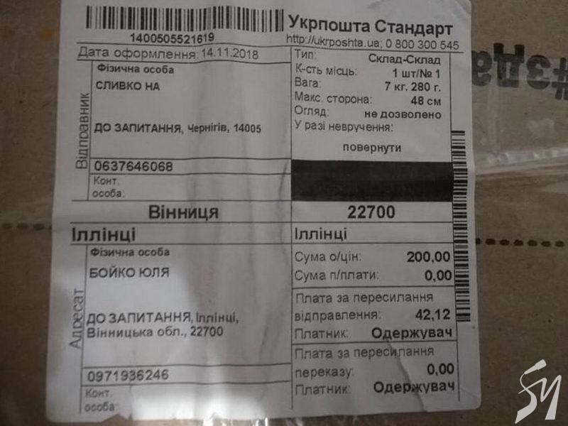 За словами постраждалого від «сервісу» «Укрпошти» клієнта, посилка була відправлена з відділення в Чернігові №5.