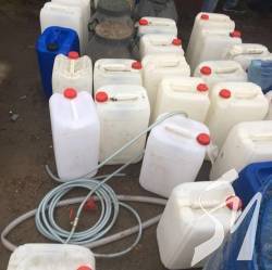 Потім розливав фальсифікат у тару по 3, 5 та 10 літрів з написами відомих виробників. Продавав «продукцію» досить дешево - по 65 гривень за літр.