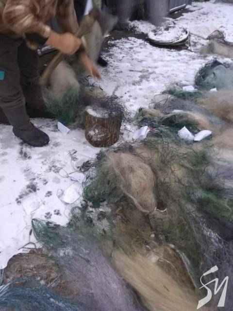 Знищувалися знаряддя лову, конфісковані у порушників протягом 2020 року та згідно з актами виявлення та вилучення безгосподарського майна. Ліквідація здійснювалася шляхом приведення сіток у непридатність для використання – рубанням та різанням.